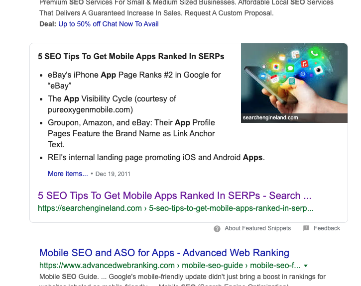 Several tactics that work for one simply have no equivalent on the other. App stores do not have Featured Snippets, for instance. The App Store and Play Store do feature apps, but that is outside of the search results.