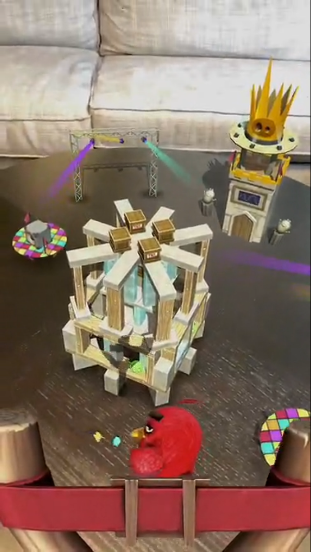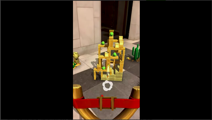 Google Play videos are not restricted to in-app footage, so Angry Birds AR could use additional video footage and art elements to enhance the video. For instance, an animated introduction could set up the story of the game, or it could use live action footage to show people interacting with the pigs’ fortresses and launching birds at them.