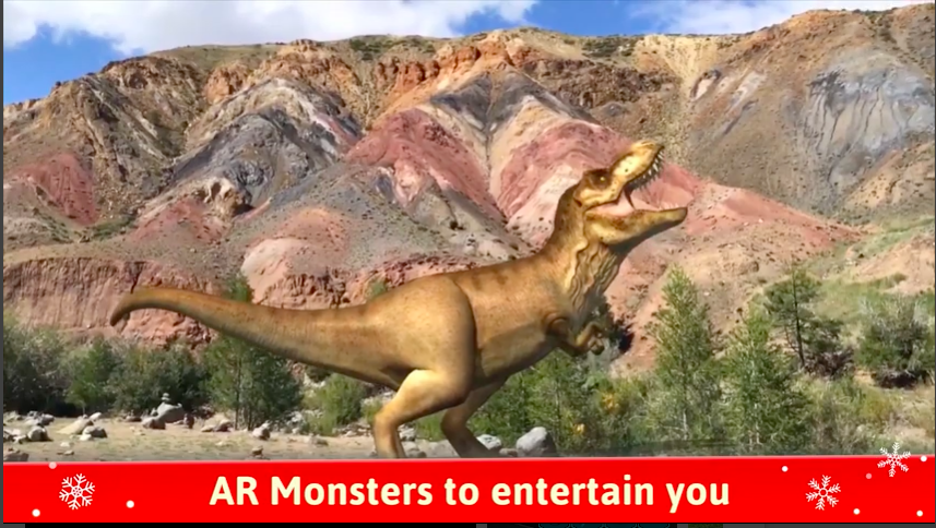 On Google Play, Monster Park AR uses a portrait mode video that shows multiple dinosaurs and monsters that players can encounter. Like Angry Birds AR, these include multiple locations, as well as scenic spots like state parks. It includes text on the bottom of the screen that describes the game’s features, such as the photo and video features.