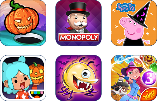 Recently, many of these same apps had changed their icons for seasonality during Halloween. Most of the same concepts used for Holiday app icon updates apply to seasonal changes during Halloween, as illustrated below.