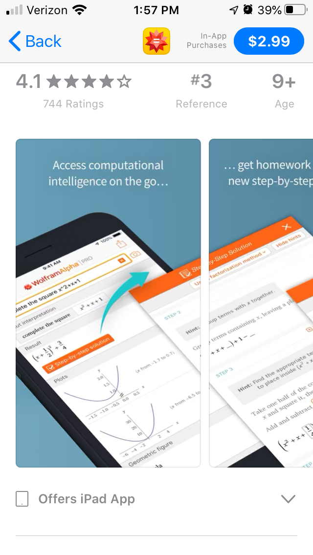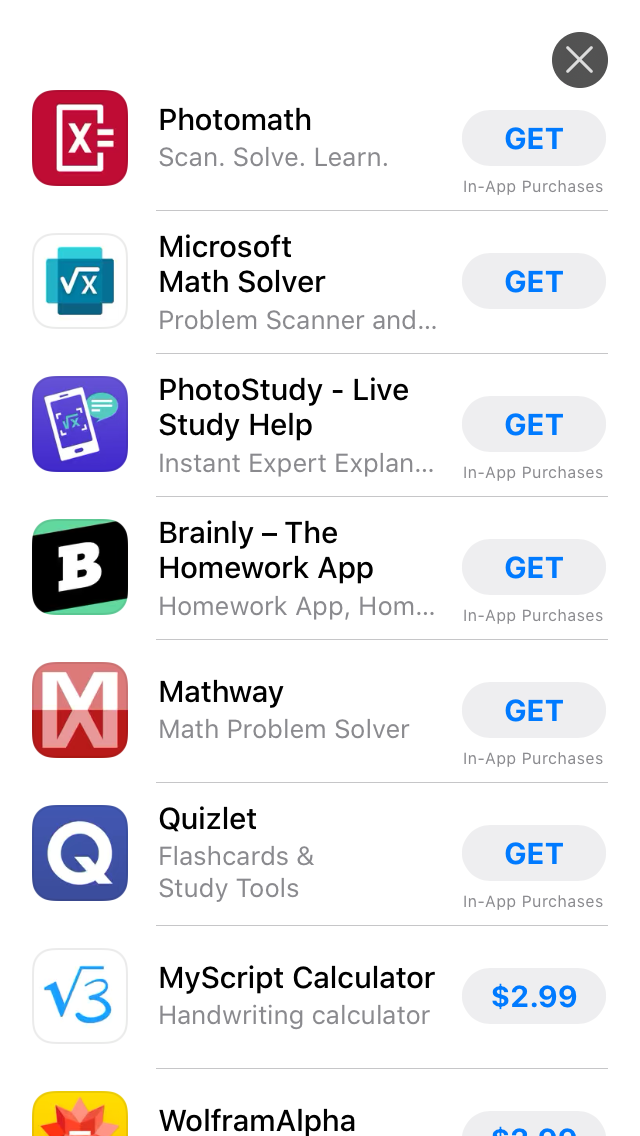 For instance, PhotoStudy begins its description on the App Store with “Stuck on a homework problem or studying for a test and need help right away?” This presents an instant value to users, particularly those looking for homework assistance. Chegg Math Solver uses a similar value proposition, telling users to “fear no math problem” before presenting helping with homework as an example of an issue it can help with.