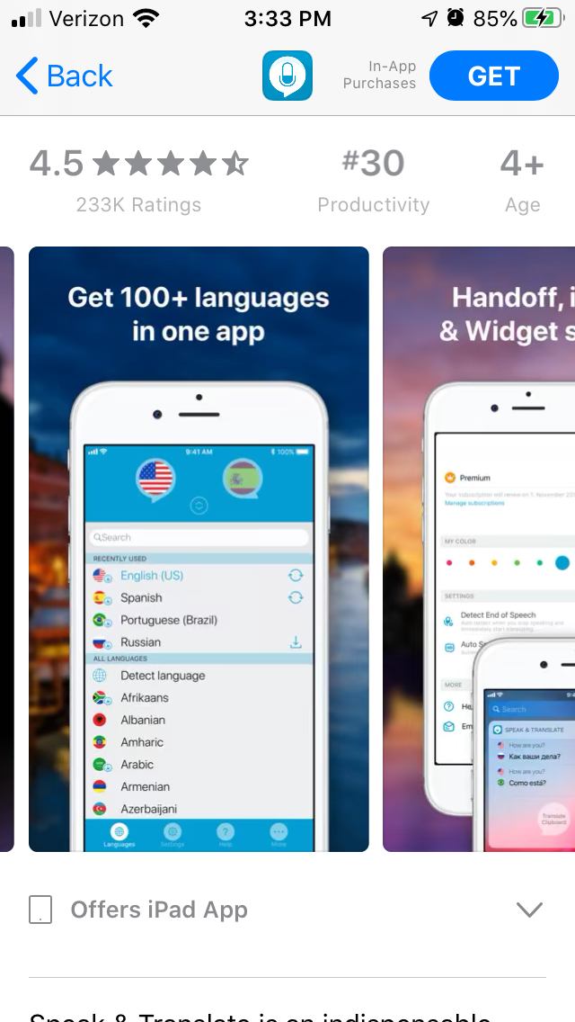 As a translation app can be used by people all over the world, it should be able to target audiences in multiple regions. Localization is an important aspect of this. If an app features a well-translated description in different languages, it will show users that speak those languages that the app is accurate.