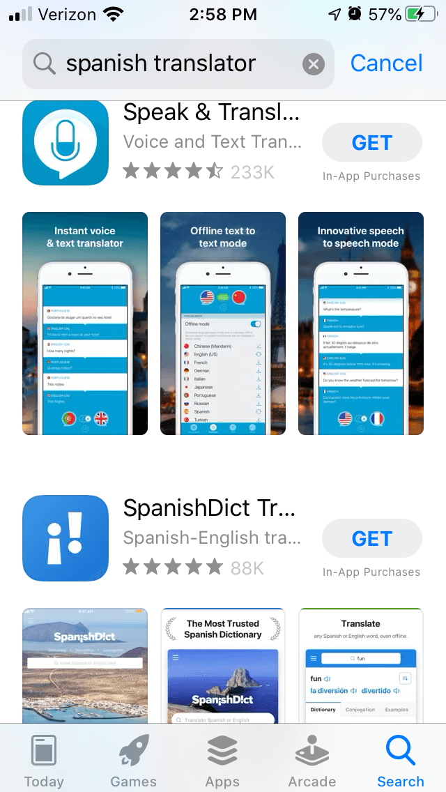 An app’s creative set is important for drawing users to the app in search results and convincing them to install from the app page. With translation apps, how can the screenshots show its UI and how it translates?