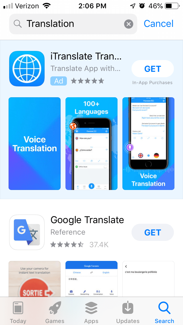 As with any good search engine, App Store Search is intuitive and provides suggestions. When a user goes to the App Store, the Search button is located at the bottom right of the screen. Tapping on it immediately presents users with a list of trending search topics based on what’s popular and the user’s download history.