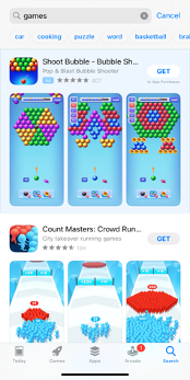 For example, if a user searches for “games” Apple returns a long list of suggested keywords for commonly searched game types, including “car,” “cooking,” “puzzle,” “word,” and more.