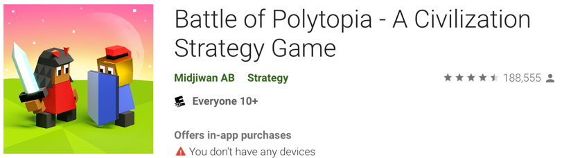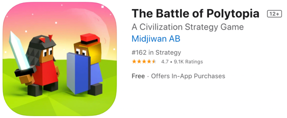 The Battle of Polytopia is a fun, award-winning turn-based civilization strategy game, with beautiful graphics and considerable depth. While Midjiwan has done a good job conveying core gameplay mechanics, they are missing some opportunities to include high-volume keywords that will improve discoverability.