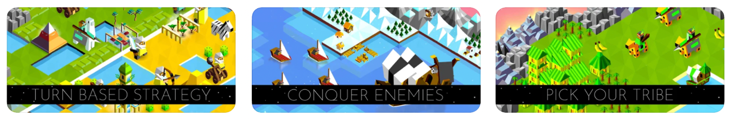The branded title “The Battle of Polytopia” makes it clear that the game features battle elements and following it up with “A Civilization Strategy Game” clues in readers who are fans of turn-based civilization strategy games that this is right up their alley.