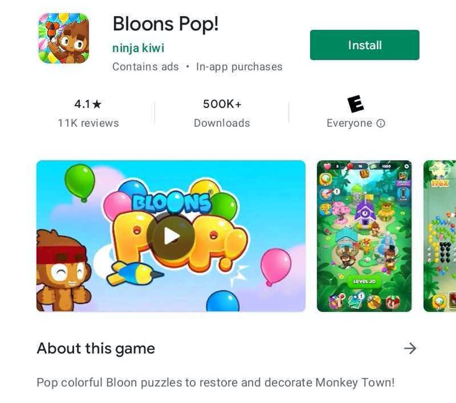 Bloons Pop! is a colorful puzzle game showcased today in Apple’s “Popular Games” feature. While this game may be popular, its ranking on both the Apple iOS App Store and the Google Play Store do not reflect this popularity. Bloons Pop!’s listings suffer from not including some of the fundamental best practices that drive visibility and conversion. Ninja Kiwi could consider revisiting their App Store Optimization strategy to improve keyword inclusion and spiff up their screenshots to drive more users to install this fun game.
