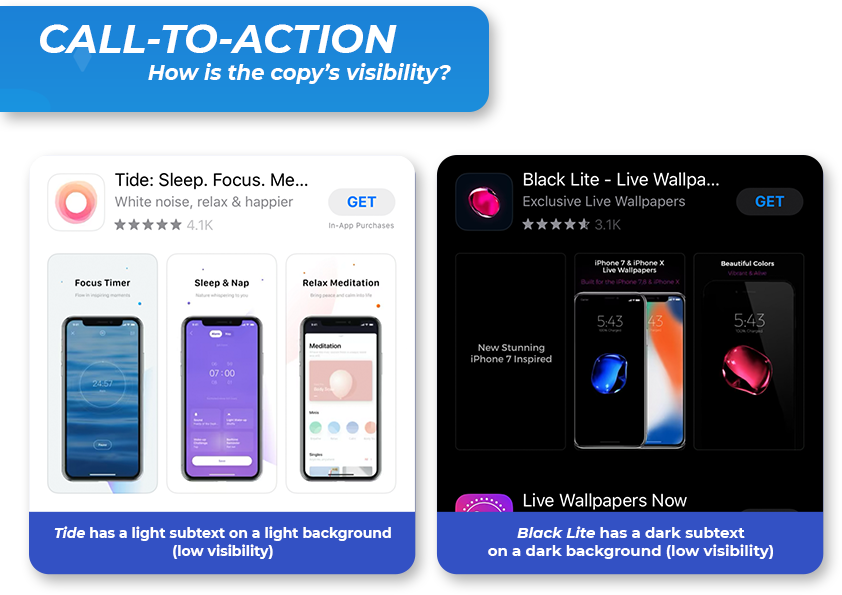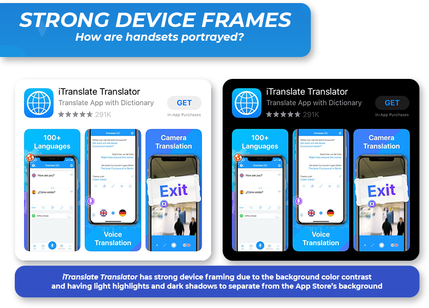 Following iOS 13’s release, developers now also have to consider how their apps look in Dark Mode. Research shows that 87% of smartphone users are on their phones within an hour of going to sleep each night, so any app on the App Store has a good chance of being discovered while the phone is in Dark Mode. Users can also choose to set Dark Mode as their default interface style. As such, how the creative sets stand out in Dark Mode will have an impact on conversions.