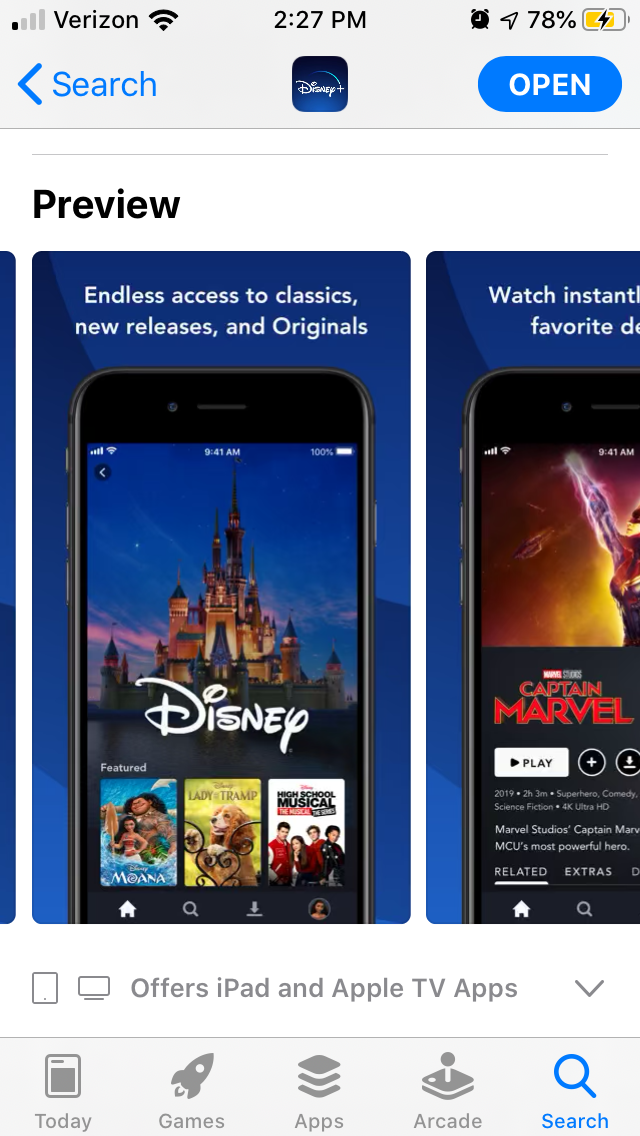 Disney+, the streaming app for all of Disney’s movies and TV shows, has launched. Within the first 24 hours, the app received an estimated 3.2 million downloads across the App Store and Google Play Store. While this is a successful launch, good App Store Optimization can help a mobile app remain competitive after the initial hype wears off and new users begin searching for streaming apps. With that in mind, let’s take a look at Disney+ for this week’s App Store Spotlight and see if its ASO has that Disney magic.