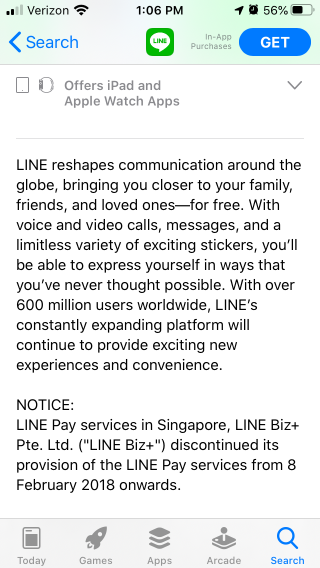 Finally, the description ends with information about LINE Fan Account subscriptions. These are only available in Japan, so it could be reserved for the version localized. The rest follows Apple’s rules for subscription apps, which requires that the description includes how users are charged and that they can cancel their subscriptions.