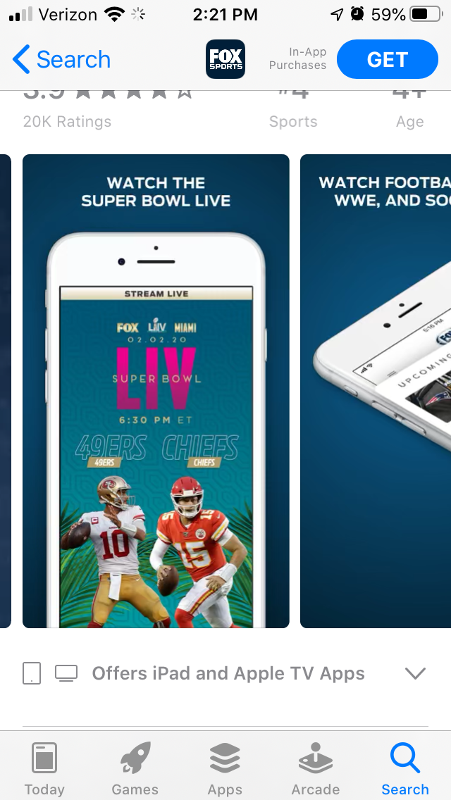 On the Google Play Store, however, users may get the impression that the app is out-of-date as its screenshots do not mention the Super Bowl at all. In fact, its description calls out last year’s “Super Bowl LIII” instead of this year’s “Super Bowl LIV.”