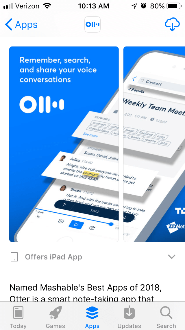 Otter Voice Notes is a speech-to-text app designed to create transcripts of voice conversations. It offers a number of tools for searching, saving and sending conversations, making it useful for taking notes on meetings, interviews and more. Of course, an app is only useful when people can find it, so is its App Store Optimization up to par, or is it hidden in the search results? For this week’s App Store Spotlight, we take a look at Otter and see if it’s coming through loud and clear.