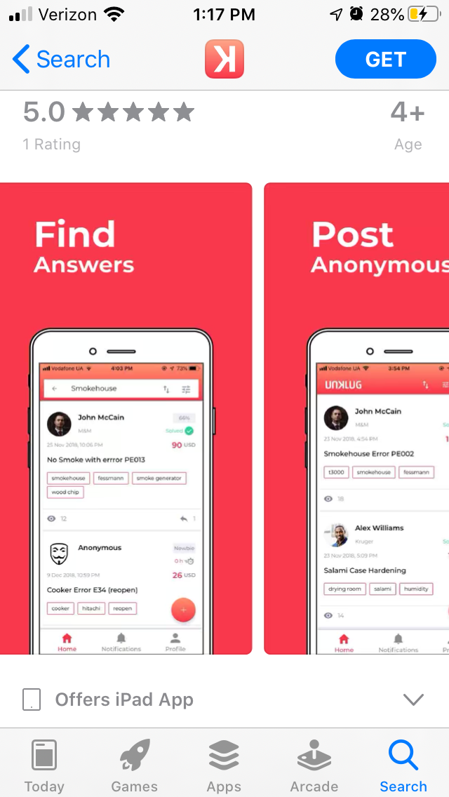 The app store screenshots for UNKLUG utilize short and bold callout text to quickly tell users what the app does. While the imagery may not be as visually active as Quora’s, users browsing the store will immediately see that the app will help them “Find Answers.”