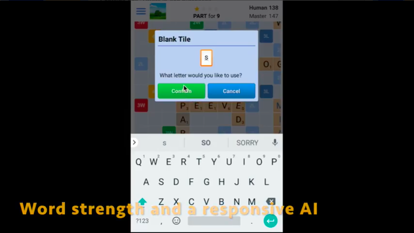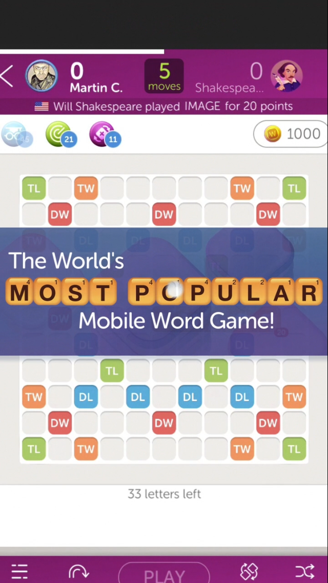 The App Store Video uses entirely in-app footage, as is required for the Apple App Store. By quickly cutting from one shot to another, it maintains a fast pace designed to keep users engaged. While the video frequently focuses on the main Scrabble game, it also shows a variety of tiles to further showcase its customization options.