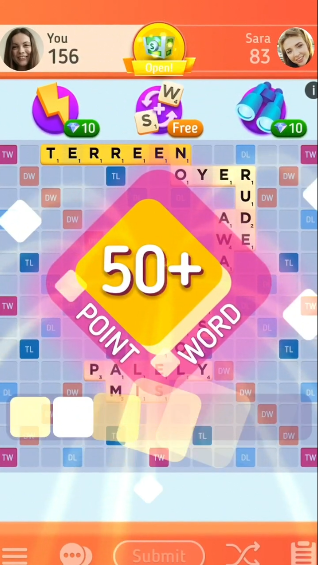 While the Apple App Store Video is in portrait mode, the Google Play video is shot in landscape. Google Play Promo Videos come from a YouTube URL, so displaying them in landscape mode is required. Oftentimes apps played in portrait mode will work with this by adding additional graphics and information to the sides of the screen while keeping the game centered, or by dividing the screen between footage like Scrabble Go’s video does.
