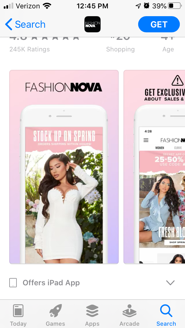 For instance, when it was focusing on fall seasonality, Fashion Nova used screenshots focused on warm clothes such as jackets and sweaters. The screenshots were framed with orange borders with spider-webs on them to tie into the Halloween mood. Now the app uses screenshots saying “stock up on Spring” and featuring lighter, cooler clothes for the changing weather.