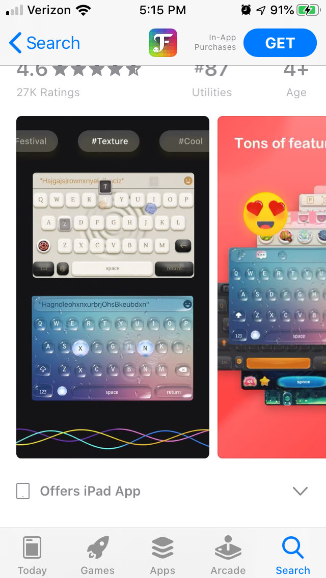 For instance, Fancy Key provides a customized keyboard. Users can design their personal keyboard with visual effects, stickers, emoji, animations and more. The app’s page calls these out in its creatives and description to let users know they’re getting more than just a swipe keyboard, although it does still make it clear that swiping is part of the app.