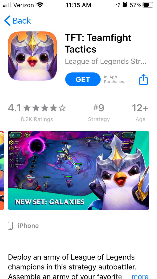 The order of screenshots matters as well. Teamfight Tactics starts with screenshots calling out its most popular features, such as “League champs battle it out” and the ranked leaderboards. The last screenshot is the one that describes the features added in the latest update and includes the mascot character from the icon.