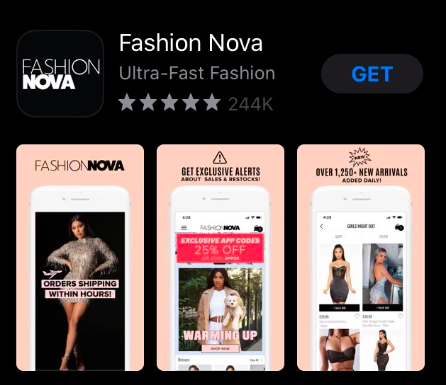 Mobile marketing outside of the App Store and Play Store can still have beneficial effects on App Store Optimization. Looking again at Fashion Nova, we can see how it uses the description to call out social network hashtags users can search for and use in their own posts. This helps the brand reach new potential customers via online word of mouth, as well as through paid promotions from social influencers, which can lead back to the app.