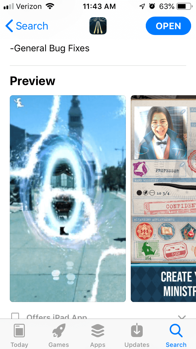 However, as it is new, there are many terms it still does not rank for. The app does not yet appear in searches for “Magic,” “Augmented Reality” or “Cast Spells.”